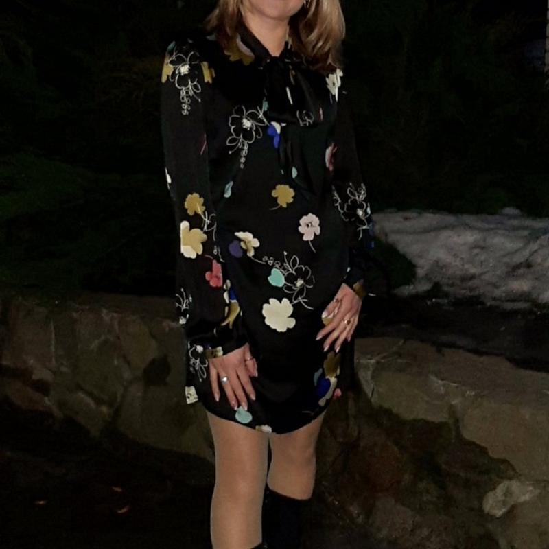 Отличное легкое платье с цветочным принтом. Подойдет как для празднований так и для легких летних прогулок. Выполнена из качественного материала. Одягнена на параметри 95/68/98.