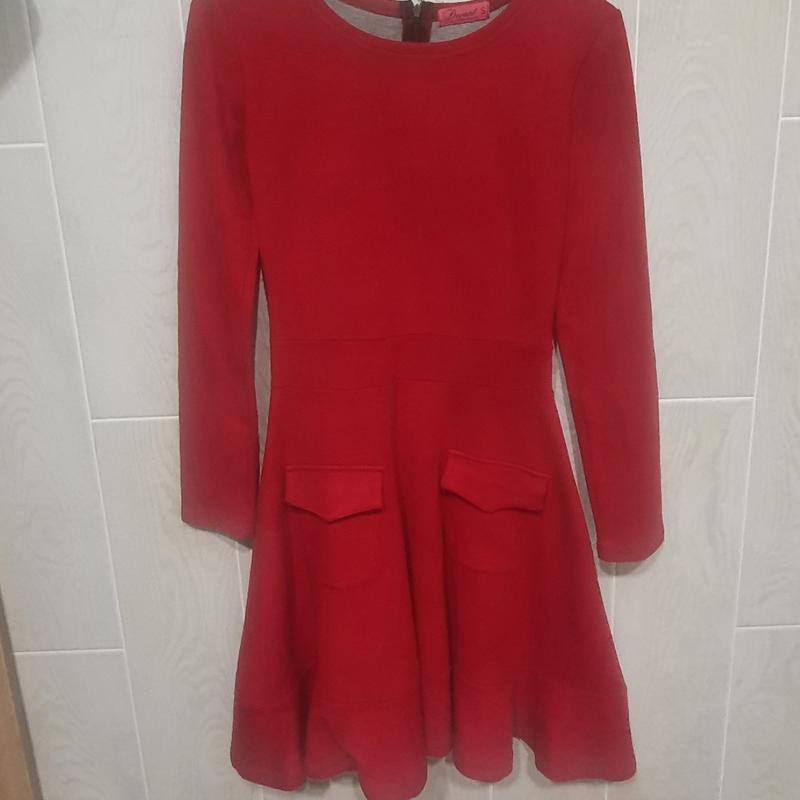 Сукня А-силуету в ідеальному стані. Ззовні м'якенький замш, а всередині дуже приємна тканина. Має імітацію кишень. Ззаді на замочку. Шикарно підкреслює фігуру. Розмір S