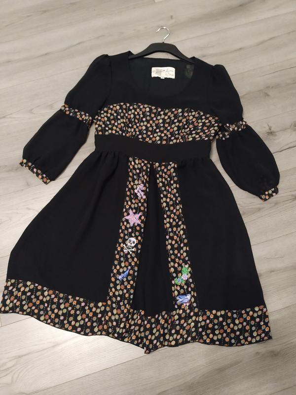 р. М Тканина шифон Подвійна тканина,крім рукава. Завищена лінія талії На боці блискавка. Довжина по спинці 91см Плечі 39см Рукав 50см Ширина між пахвами по спинці 48-49см Лінія талії 40-41см Від плеча до лінії талії 31,5 см Від лінії талії кльош. Состояние новой вещи.