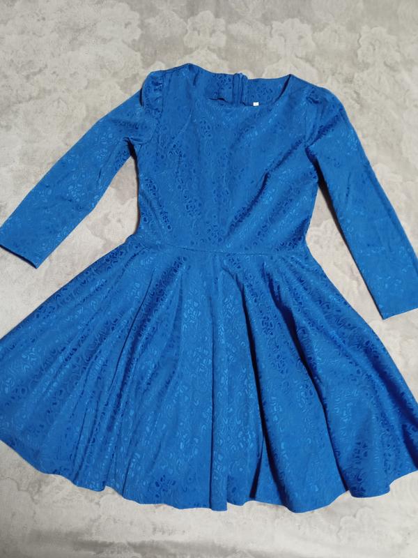ідеальний стан, одягнена один раз на виступ. Колір синій. ззаду на змійці, є ще пояс чорний, довжина вище коліна, рукав 3/4, розмір 42-44