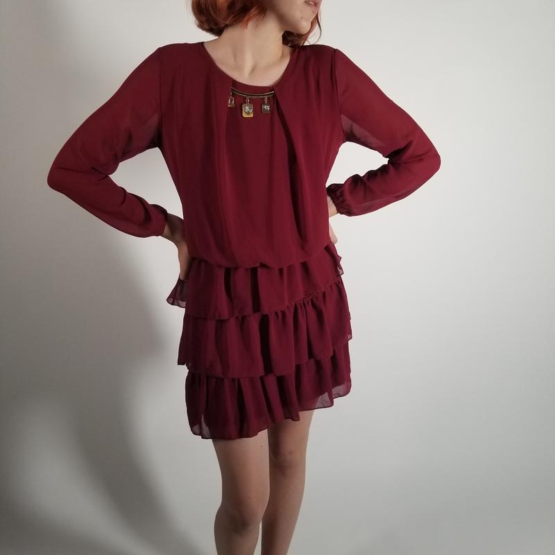 Сукня шифонова з підкладкою колір бордо та синій розмір с-м довжина 85 см, пог 46 см, талія на резинці 32 см модель ріст 172 виробник Італія