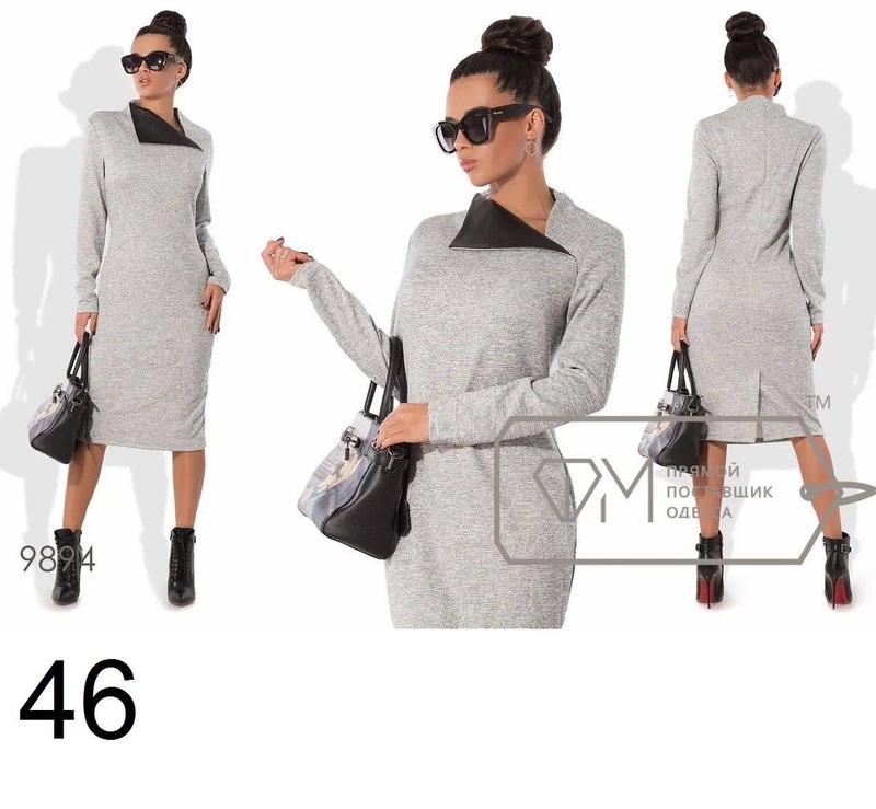 Д. Модель № 429 Цена: 300 грн Размер;42;44;46 Ткань: трикотаж с люрексовой нитью+эко -кожа ( пояс в комплекте) Длина: 105см Длина рукава: 59см Цвет-т.синий, серый