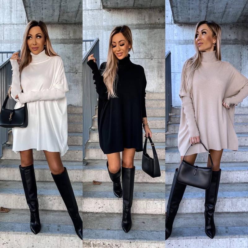 Сукня мод. ru 623 тканина: двостороння ангора розмір: 42-46 кольори: чорний, молочний, беж ЦІНА 709 грн🏷