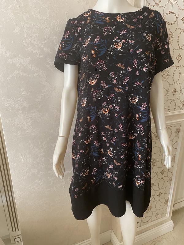Дуже красива сукня на чорному фоні квіти і метелики від бренду George. Сукня вільного крою, ззаду металева блискавка. Розмір L-XL. Заміри: Довжина-92 см Плечі-42 см Об’єм грудей-110 см Талія-100 см Стегна-120 см