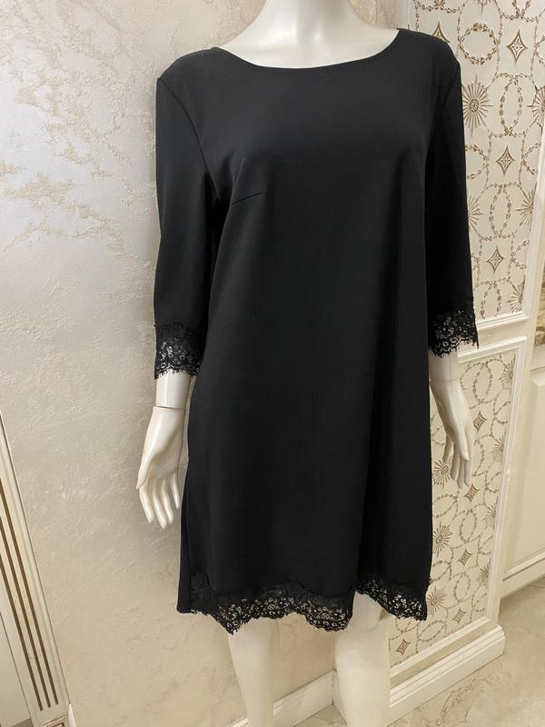 Чорна сукня/плаття вільного крою з рукавом оздоблено мереживом