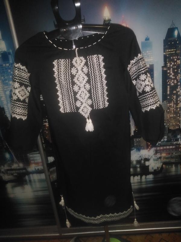 Шикарное платье - вышиванка! Чёрное платье с белой вышивкой. Вышивка на груди, рукава, внизу. Размер S