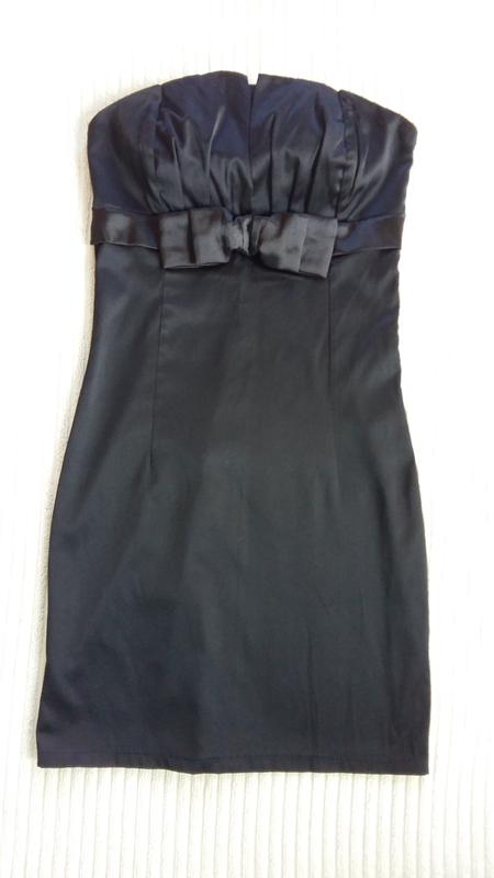 Черное короткое коктельное платице для стройной изящной девушки. Идеально подчеркнет хорошую фигурку. Очень классная моделька. Красиво оформлена грудь, под грудью - средней величины бант. Сбоку замок. Ничего лишнего. Материал глянцевый, под атлас,тянется. Производство - Италия. Размер указан S, но немножко маломерит и лучше ляжет на XS.