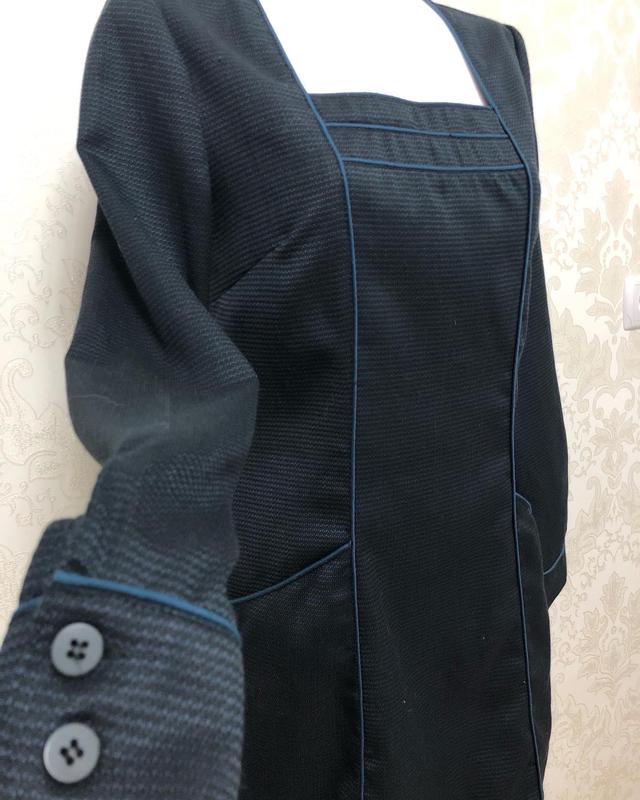 Неординарне стильне вовняне плаття, на підкладі. Нове, з біркою⭐️ В складі 38% вовна🐑 Фактурна статусна тканина. р. S ПОгрудей 45-46 Плечі 38 Рукав 69 ПОбедра 46 Довжина 86