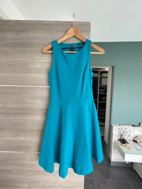 ДУЖЕ ХОРОШИЙ СТАН Розмір S Тканина цупка тому гарно спадає. Колір насичений БІРЮЗОВИЙ