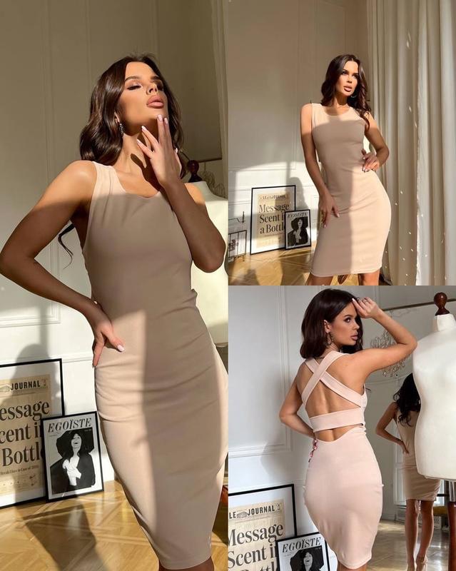 Стильна сукня з перехрещеними бретелями на спині. Тканина стрейчева, приємна до тіла, добре лягатиме по фігурі. Тканина: креп - дайвінг