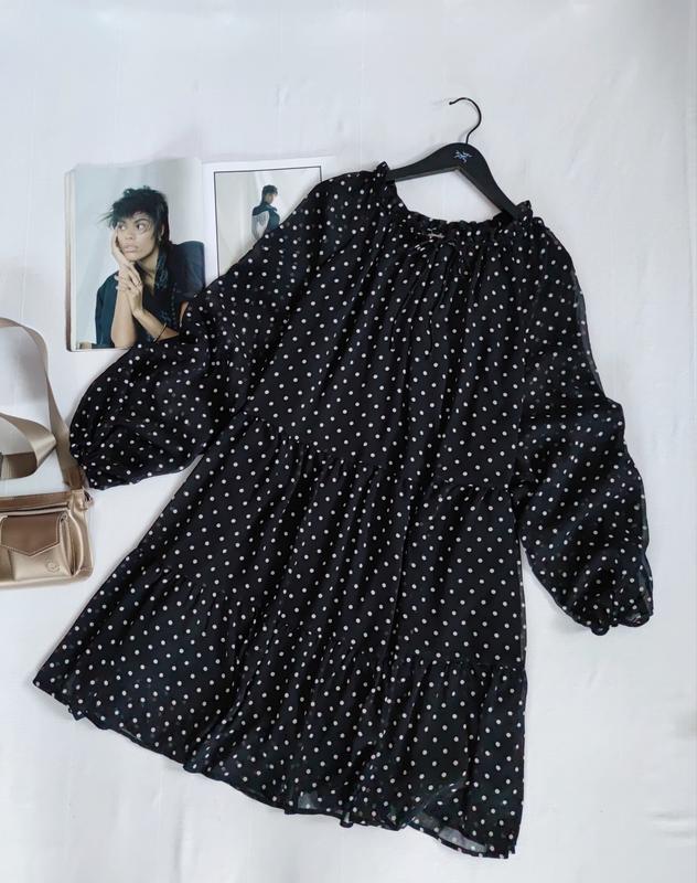 🌿ярусна сукня в горох від H&M з підкладкою Розмір:L, XL Заміри:ПО грудей 63 см, довжина 90 см, довжина рукава від горловини 70 см