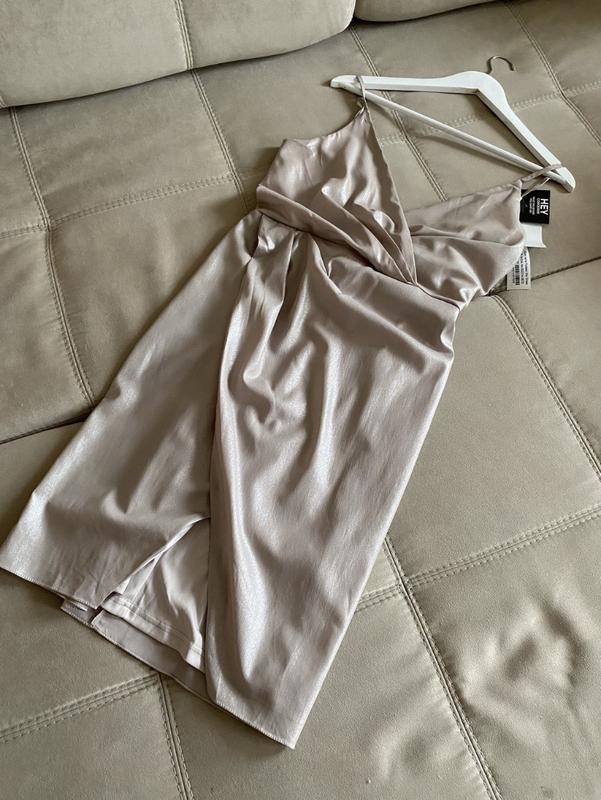 Нюдова, перламутрова невагома сукня на тонких бретелях з відкритою спиною та розрізом на ніжці Розмір С/М Нова В стилі Guess