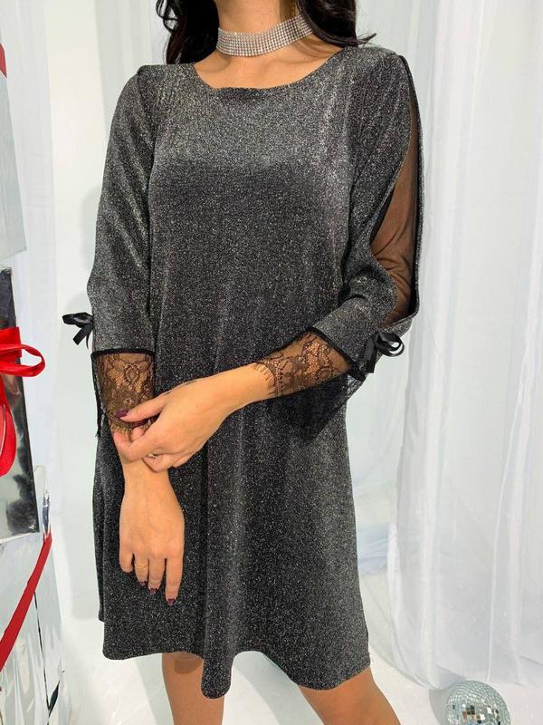 Сукня. Модель 142 Незабаром найчарівніша ніч у році. У люрексовій сукні ти точно будеш зіркою вечора Тканина: трикотаж люрекс, м'яка сітка, дороге мереживо Розміри: 42-44, 50-52 Колір: чорний, срібло Ціна: 650 грн ___________________________ Параметри моделі: Зростання 172 Ог 90 см, від 65 см, про 93 см