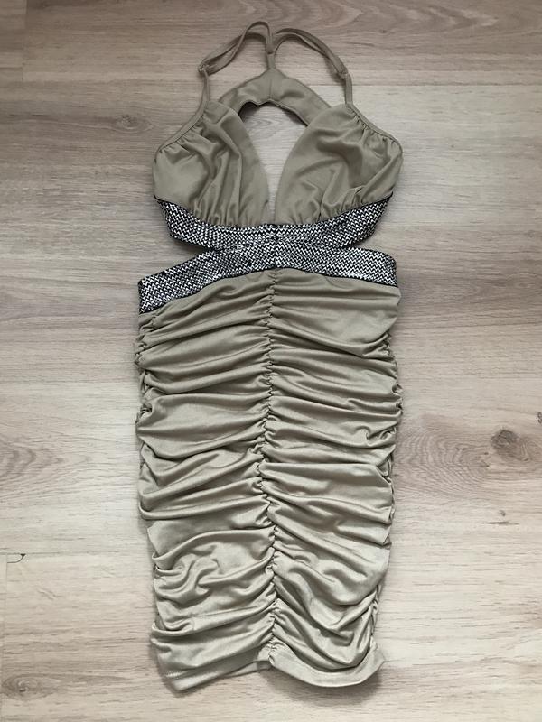 Вечернее платье с открытой спиной и глубоким вырезом, сидит идеально из-за тянущейся ткани и сборок. Модель на размер XXS-XS. Цвет светло-оливковый. Возможен торг