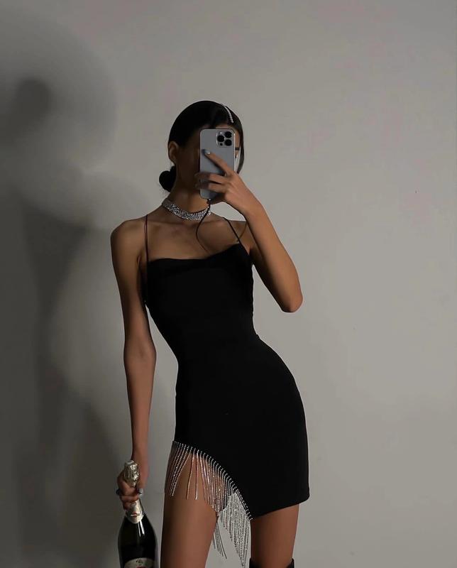 Сукня з бахромою Модель 138ам Розмір: 42-44, 46-48 Колір чорний Тканина: креп дайвінг