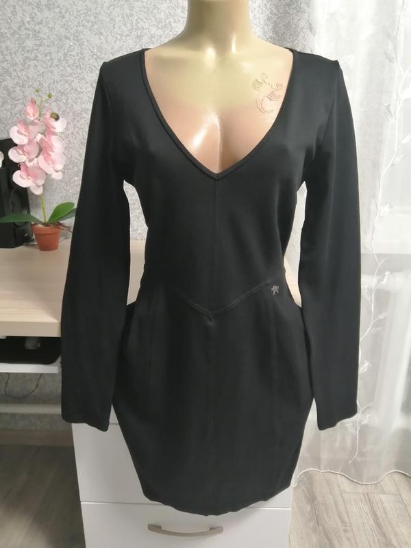 Жіноча чорна, по фігурі сукня з довгим рукавом. Розмір L-XL. В ідеальному стані, плотна, стрейчева, не мнеться. Довжина 94,ПОГ-48,ПОТ-40, ПОБ-53, в низу 54см, ДР-65,ШР - 16,5см.