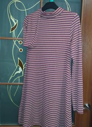 Стильное платье в мелкую полоску, ткань рубчик. А-образный силуэт, хорошо смотрится на фигуре. Замеры: длина 83,5 см, ширина в плечах- 35 см( в нерастянутом виде, тянется до 48 см) ширина в груди в нерастянутом виде - 40 см( тянется до 53 см) , талия - 39, тянется до 51 см, длина рукава от плеча - 62 см