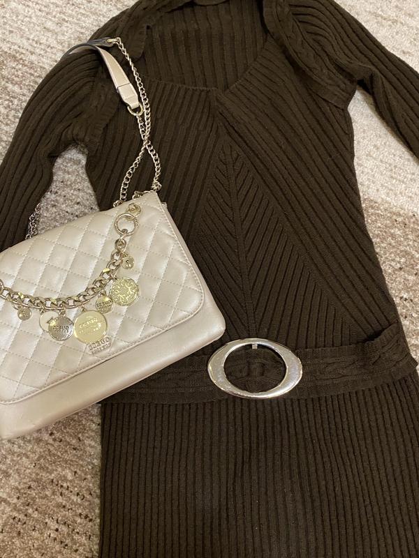 Дуже тепле плаття . На фото високий зріст, тому на середній - буде довшою. Пишіть- заміри зроблю. Колір насичений коричневий . Приємна до тіла. Сумка , що на фото - теж продається . Плаття - 670 грн. Сумка Guess- 1750
