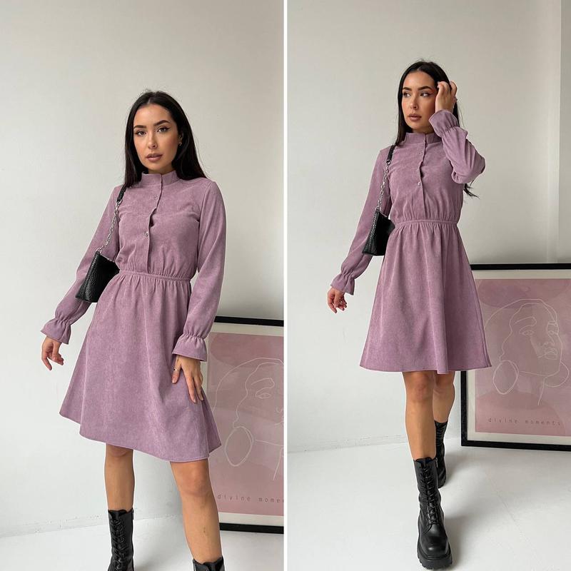 Розміри 42,44,46,48 Тканина вельвет Кольори фрез, пудра, кава, джинс Комір стійка,гудзики робочи,на талії вшита резинка,рукав ліхтарик