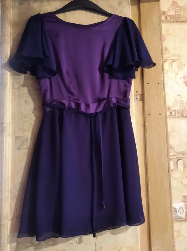 ткань шелк и шифон, подкладка цвета фуксии, рукав крылышко, длина платья 82 см, талия 70, грудь 90.
