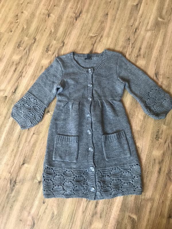 В’язане платіце, колір сірий. Вказаний розмір М, 170/92. Дліна 87см, рукава 47см, ПОгруді 44см, ПОпояс 39см, плечі 40см.