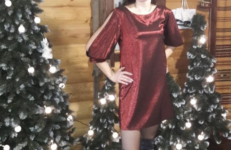 Гарне плаття ,тканина переливається ,ззаду завязуєтся бант,на рукавах розрізи
