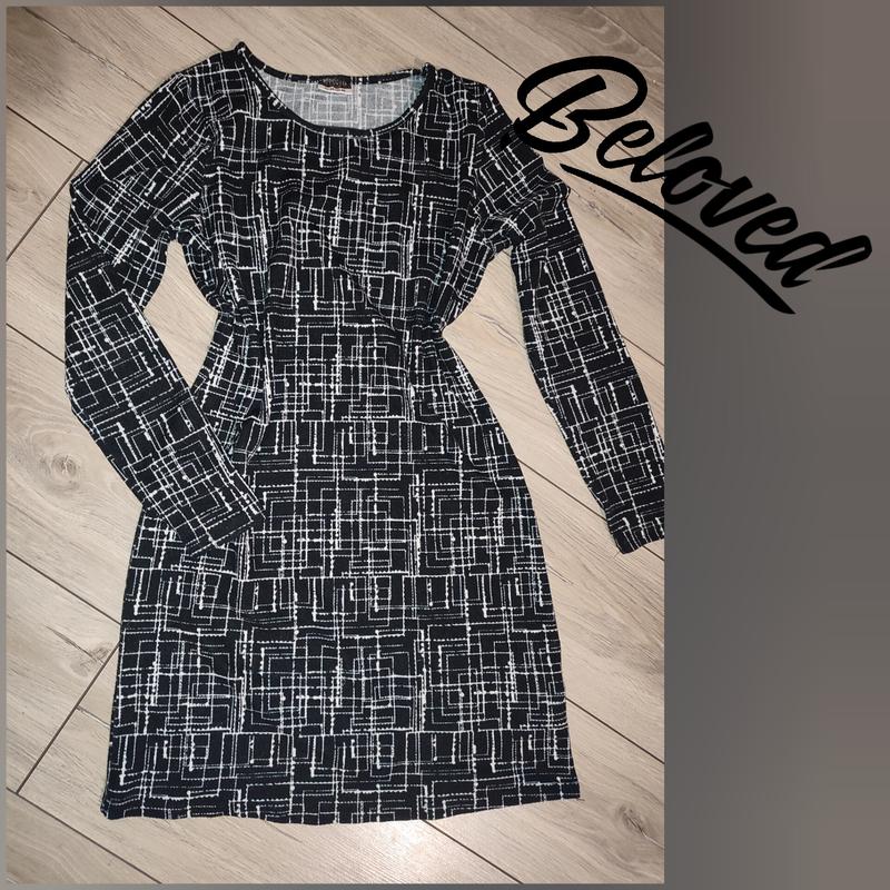 Тепле стильне плаття прямого покрою, гарно сідає по фігурі. Абстрактний орнамент Довжина - вище колін Розмір M/L Заміри на фото