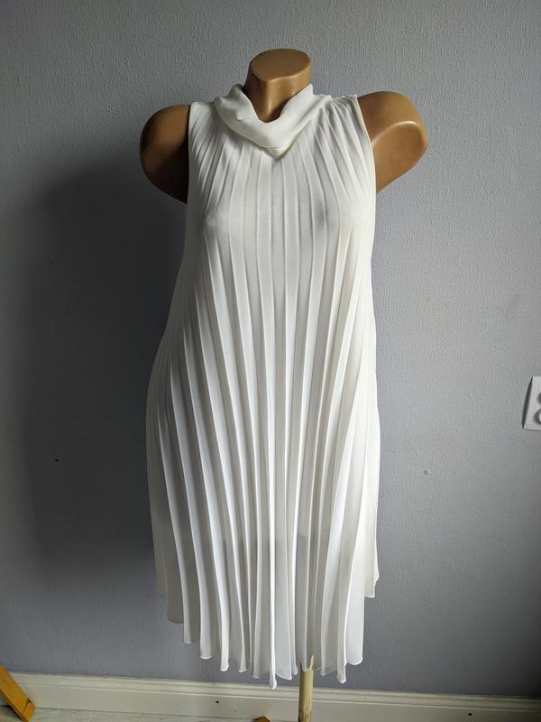 Плісе - елемент для візуального збільшення тієї чи іншої частини. Легка сукня із шифону, на підкладці, шалевий комір, розмір М, більш оріентуйтесь по вимірам: довжина по центру - 90 см, ПОГ - 47-50 см, глибина пройми - 26 см. ПОВЕРНЕННЯ та ОБМІНУ ТОВАРУ НЕМАЄ!