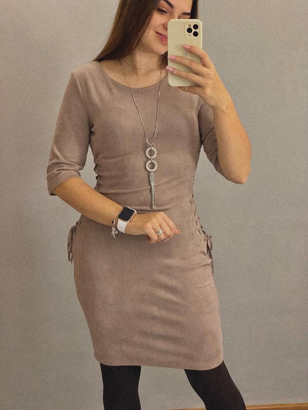 Сукня Noemi Kent, замш, корсет з обох боків, отже підійде як на S так і на М, добре тягнеться . Стан ідеальний Розмір s-m Заміри: Груди 44 Талія 30 Стегна 46 Довжина рукава 34 Довжина 85