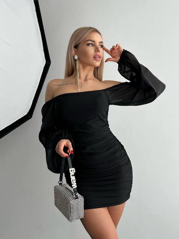 Сукня з шифоновими рукавами🖤 Мод 126 sb📍виробник Одеса ▫️Тканина: масло, рукав шифон ▫️Розміри :42-46 ▫️Кольори: чорний Чорна міні сукня зі збіркою з боків та шифоновими рукавами Рукава можна носити спускаючи з плеча 🛒ВІДПРАВКА протягом 3-7 робочих днів‼️ Вартість 540 грн