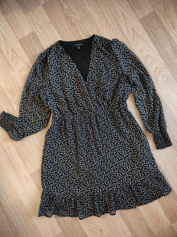 Гарна сукня з квітковим принтом Стан ідеальний Купувала в New Yorker Розмір Л Параметри: довжина - 88 см рукав - 61 см плечі - 37 см Напівобхват грудей - 53 см (декольте відкрите) напівобхват талії - 39 см (резинка тягнеться до 55 см) напівобхват стегон - 57 см