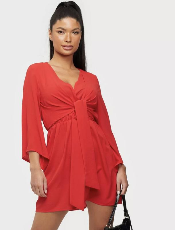 Яркое легкое красное платье с вырезом и объемными рукавами ❤️🔥 ax paris