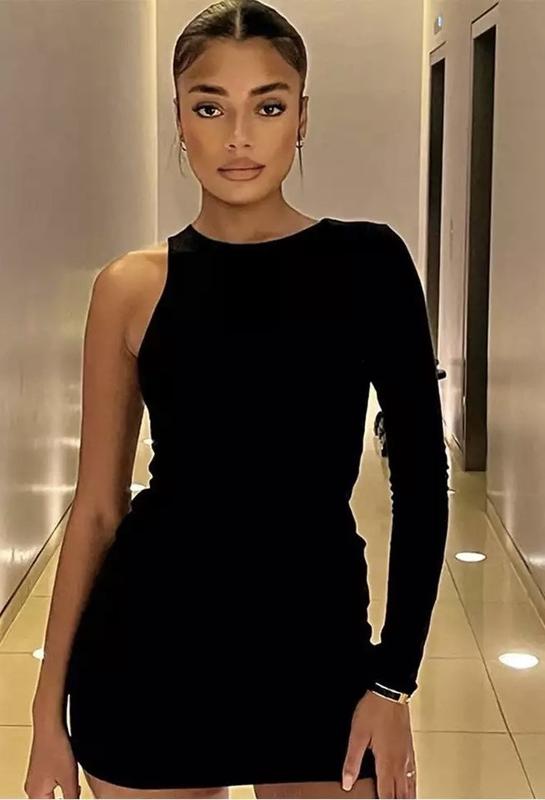 Плаття чорне ассиметричное, розмір S-M, склад: поліестер, спандекс. Нове