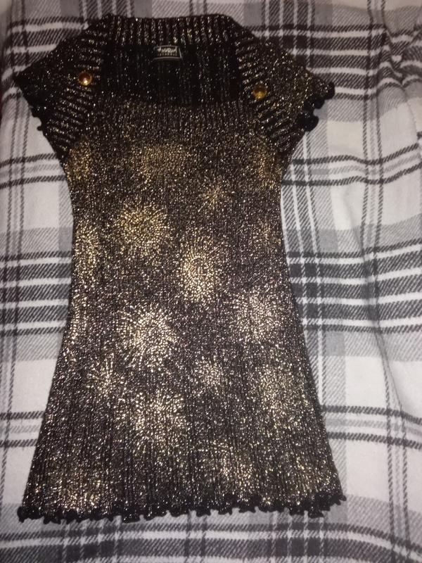 Святкова сукня з коротким рукавом,але під низ можна вдягати тоненьку водолазку.Тканина стрейч. Виробництво Турція.