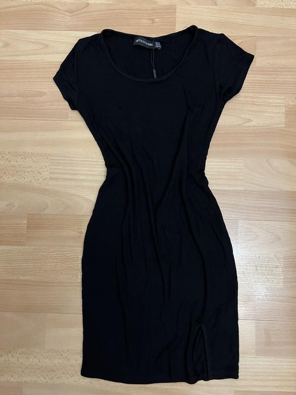 Чорне міні-плаття, абсолютне новеньке, розріз на нозі, хс розмір, тягнеться Заміри: довжина 74, пог 31, Пот 29, Поб 35