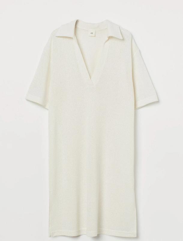Короткое прямое платье длиной до середины икр, связанное из смесовой вискозной пряжи. На платье отложной воротник, треугольный вырез, а также короткие рукава. Разрезы по бокам. Артикул Бренд H&M Состав50% полиэстер, 50% вискоза Стиль Кэжуал Узор Однотонный Страна производства Камбоджа Страна бренда Швеция в состоянии новой вещи без бумажных бирок размер S