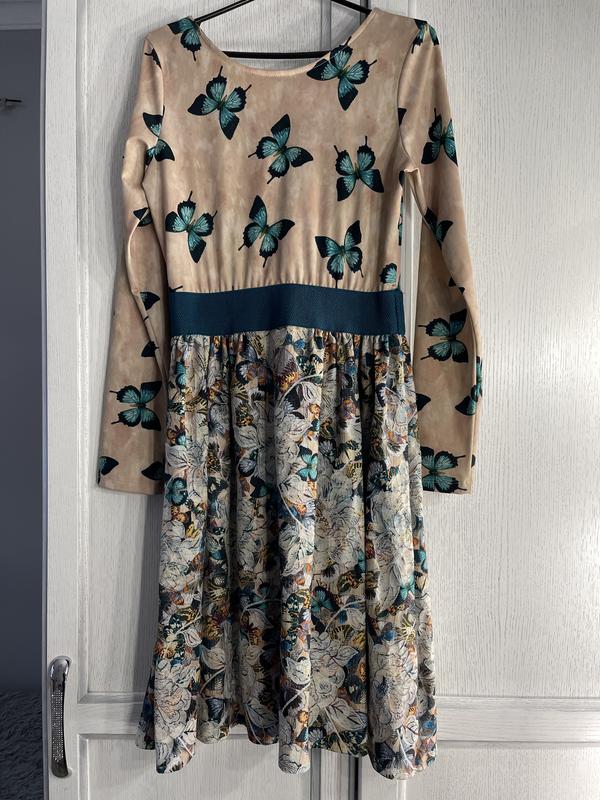Замеры: пог 42, пот 35, в бедрах свободно. Тканина еластична, тягнеться. Длина 99, длина рукава 63