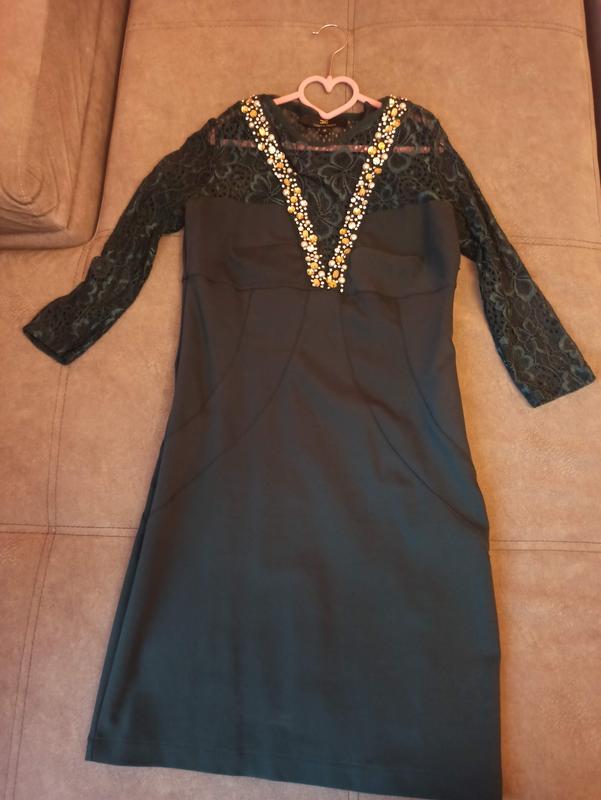 Плаття стрейчеве, сидить гарно по фігурі, є невеликий брак, але його не видно, коли одягнене (затяжка, див. останнє фото).