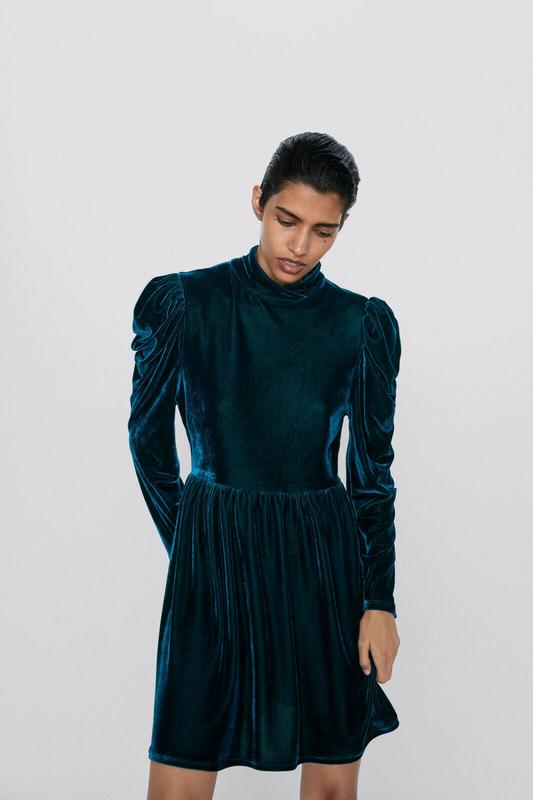Оксамитове плаття zara р. m велюрова сукня, бархатное платье с пышными рукавами