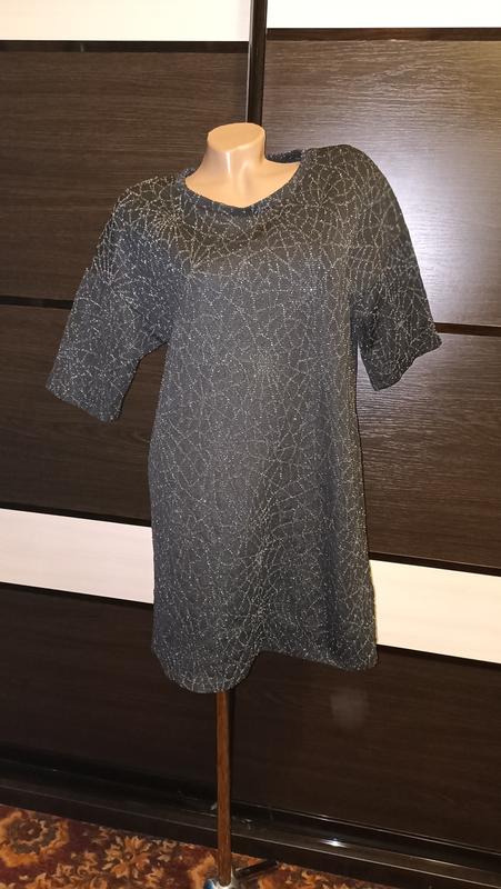 Шикарная вещичка с люрексовой ниточкой. Красиво блестит. Нарядная. Немного тянется. Без дефектов и нюансов. Ткань плотная но не толстая. ОГ 102-112 см ОТ 102-112 см ОБ 106-116 см Длина 81 см