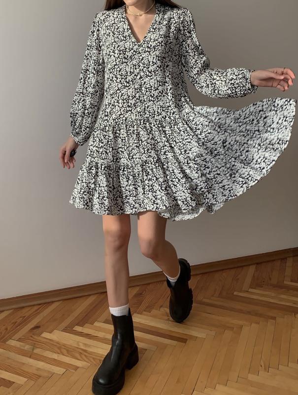 Ярусное платье Zara бейби дол мини платье пышное мини Размер на бирке XL отлично будет на М-L одето на рост 173 Ширина (грудей) 55 Длина по спинке 85 Длиннее рукава 52