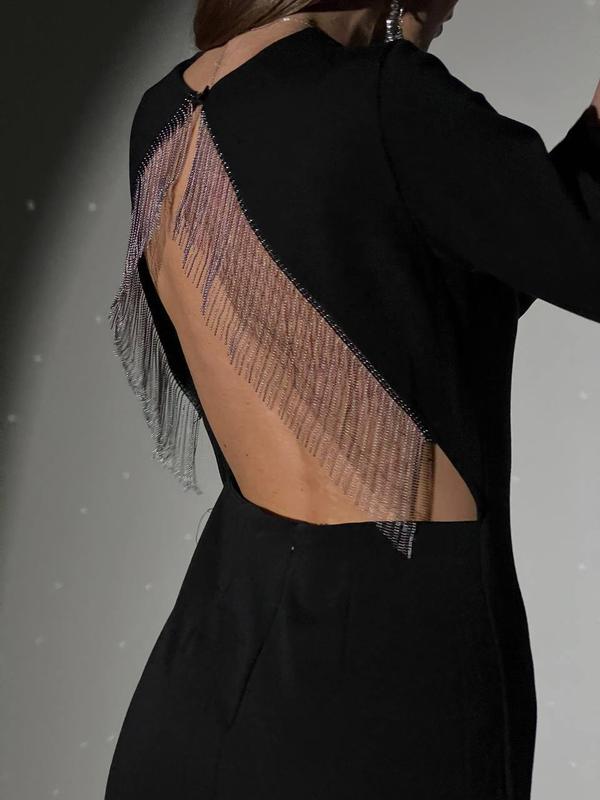 Сукня 🤩 Мод: 134 ам📍виробник Одеса ▫️Розмір: 42-44, 46-48 ▫️Колір чорний ▫️Тканина: трикотаж Алекс Сукня, яка нікого не залишить байдужою. Ідеальний варіант для вечірки, де ти сяятимеш, як справжня зірка Бахрома металева. 🛒ВІДПРАВКА протягом 3-7 робочих днів‼️ Вартість 640 грн