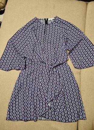 Крутое платье Silvian leach, размер s. рукав клеш, спереди выполнена имитация завязки. От пояса подкладка. На спине застегивается на молнию. Замеры длина общая от плеча спереди 93, рукав реглан, меряю от шеи 60/34, пог 46, пот 36