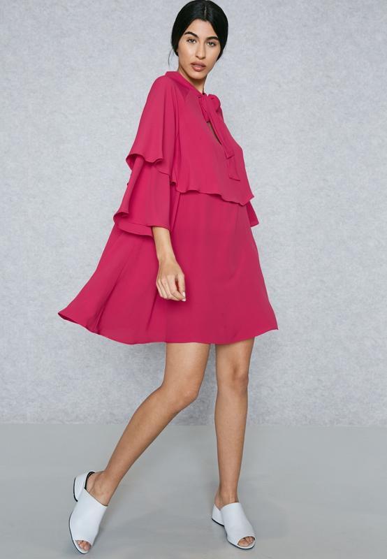 Платье, с рюшами, малиновое, манго, mango