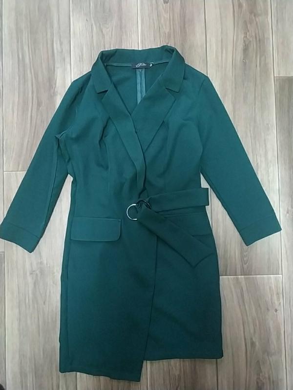 Очень красивое женское классическое асимметричное платье- пиджак зеленого цвета,стан новой была одета 1 раз, ПОГ-45,ПОТ-39,ПОБ-45, длина платья85см, по асимметрии88см, длина рукава 49см,рукав можно еще раз подкачать.
