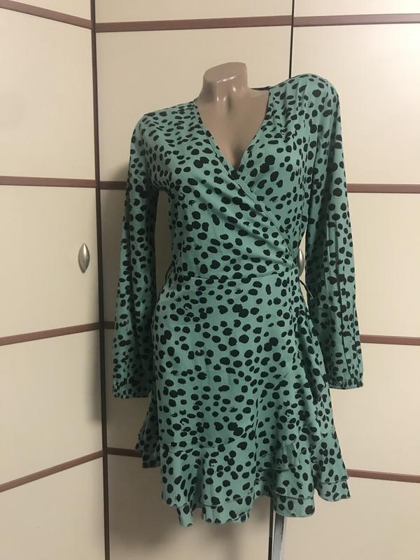 Красиве легеньке плаття,розмір М(вказаний 10) Довжина 85см,довжина рукава 59см,пог 51см,пот 38см,поб 49см,позаду замок,є місце під пояс,плаття нове,без паперових бірок.