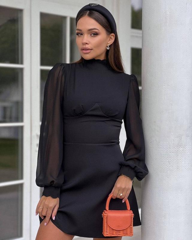 Новинка 🥰 Сукня ▫️Тканина : костюмка + шифон ▫️Розміри : 42-44, 46-48 ▫️Колір : чорний ▫️Ціна : 600 грн 🔥 Неймовірно гарна сукня з акцентними рукавами 😍 Гарно підкреслює талію 🔝 Ідеальна на новорічні свята 🎄❤️