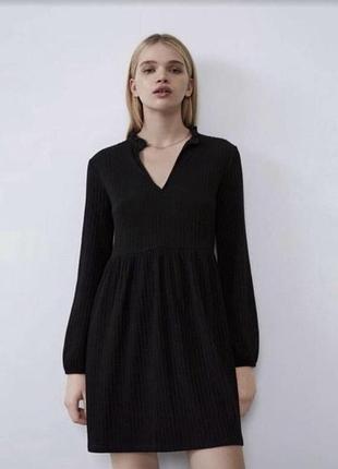 Чорне базове плаття від ZARA, із останніх колекцій, розмір вказано М, підійде і на S. фактурна Тканина, V-виріз, рукав на резинці. Стан нової речі, без недоліків. Торгу немає ! Заміри: Пог 44 см + тягнеться до 70+ см; Пот 40 см; Поб вільно; Довжина від талії 50-51 см, від плеча 84 см
