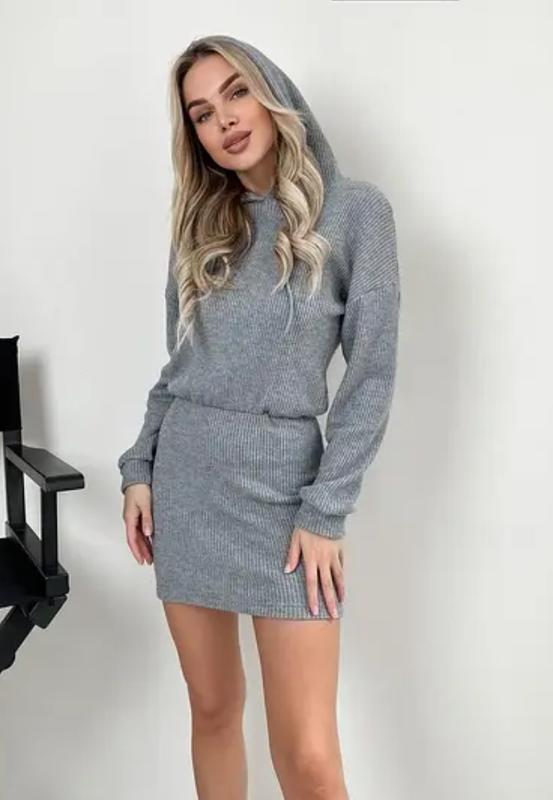 Платье женское Модель 1592 НК Размеры-оверсайз (42-46) Ткань-Трикотаж вязка. Цвета: серый, джинс.