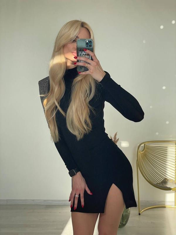🔥ФОТО РЕАЛ🔥 Сукня міні 💣 ▪Код товару: 406 ▪ОПТ 510грн🔥 ▪Тканина: трикотаж люрекс ▪Колір: графіт, чорний ▪Розмір: універсал (S-L) ▪️Параметри виробу: Довжина виробу-91 Довжина рукава-63 ОГ-77 ОТ-63 ОС-86 📌Ефектна обтягуюча сукня, на плічках. На нозі розріз. Тканина приємна до тіла та добре тягнеться!✅